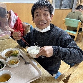日中は、ワークセンターつるみの郷の生活介護と合同で活動を行っており、入所されている方々以外にも、地域で暮らす利用者の方との交流をしています。土日は施設内で、余暇活動を行ったり、自由な時間を過ごしています。