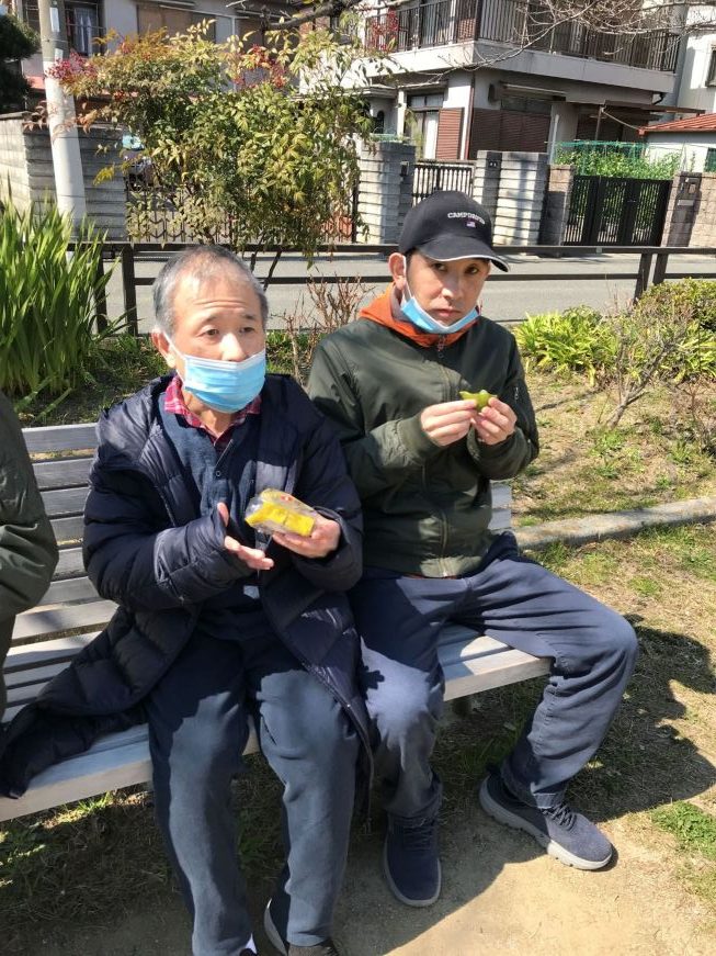 そのあとは近くの公園を散歩して、日光浴をしながらお菓子タイム。