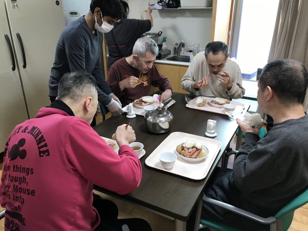 食後には、近くのコンビニへ出かけ、各自が好きなおやつとドリンクを選んで購入して、施設へ戻って飲食しました。